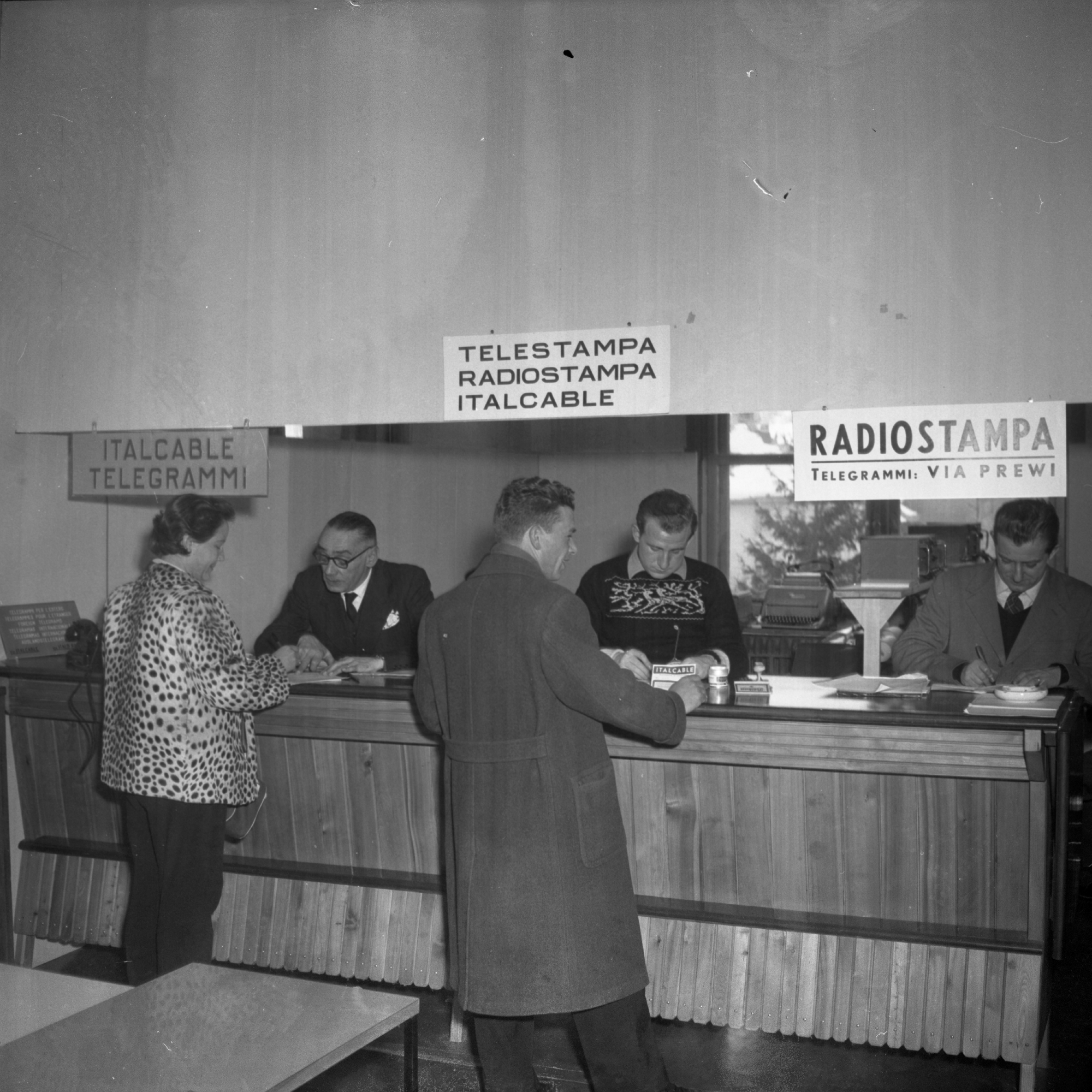 4. I servizi di telestampa, telegrammi e radiostampa presso il Centro per la stampa all’Albergo Savoia, 21 gennaio 1956