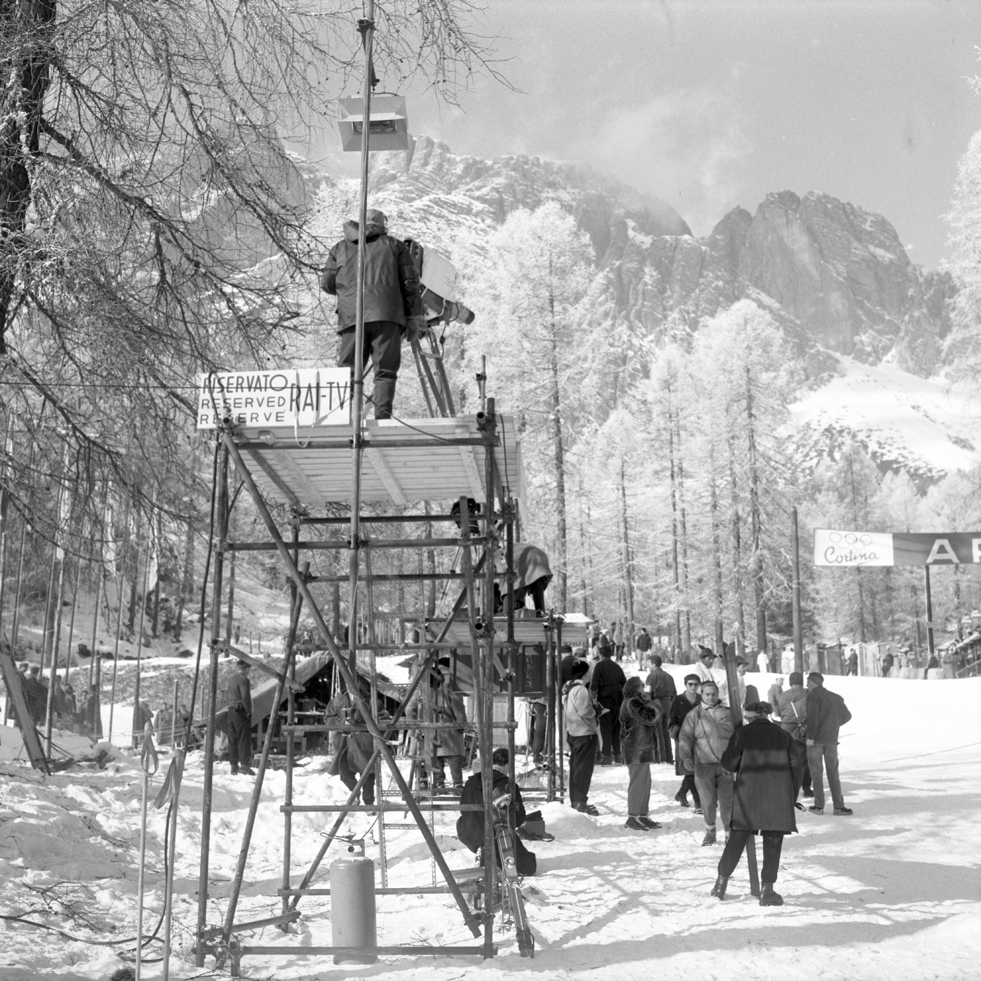 7. Mezzi e attrezzatura Rai per le riprese a Cortina d'Ampezzo dei VII Giochi Olimpici Invernali, 03 febbraio 1956