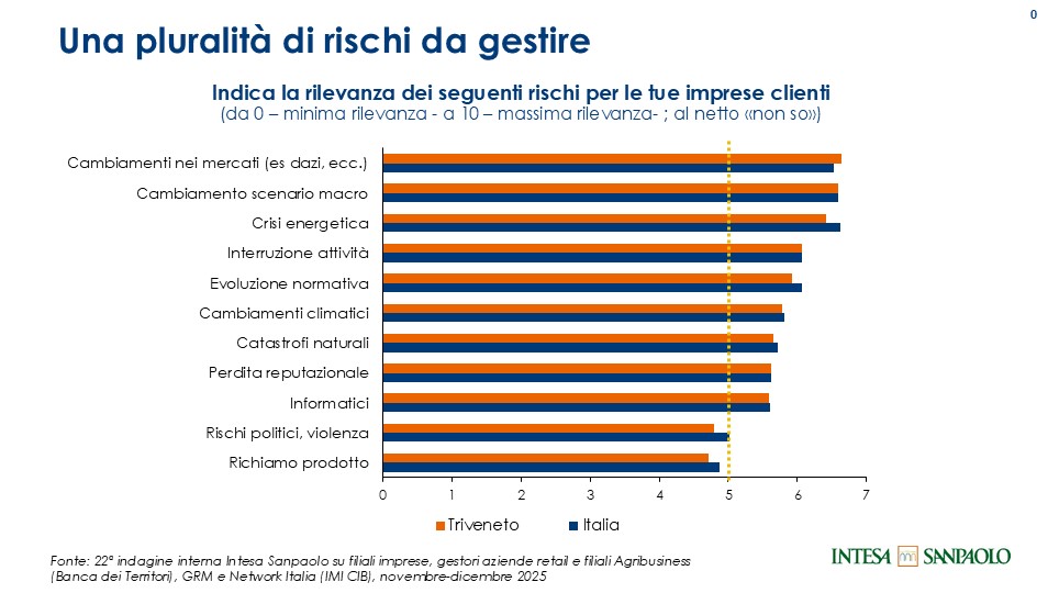 Secondo gli imprenditori e i manager intervistati da Intesa Sanpaolo - un campione altamente rappresentativo del tessuto economico-produttivo del Paese - in questa fase le imprese devono affrontare una pluralità di rischi, tra i quali spiccano: