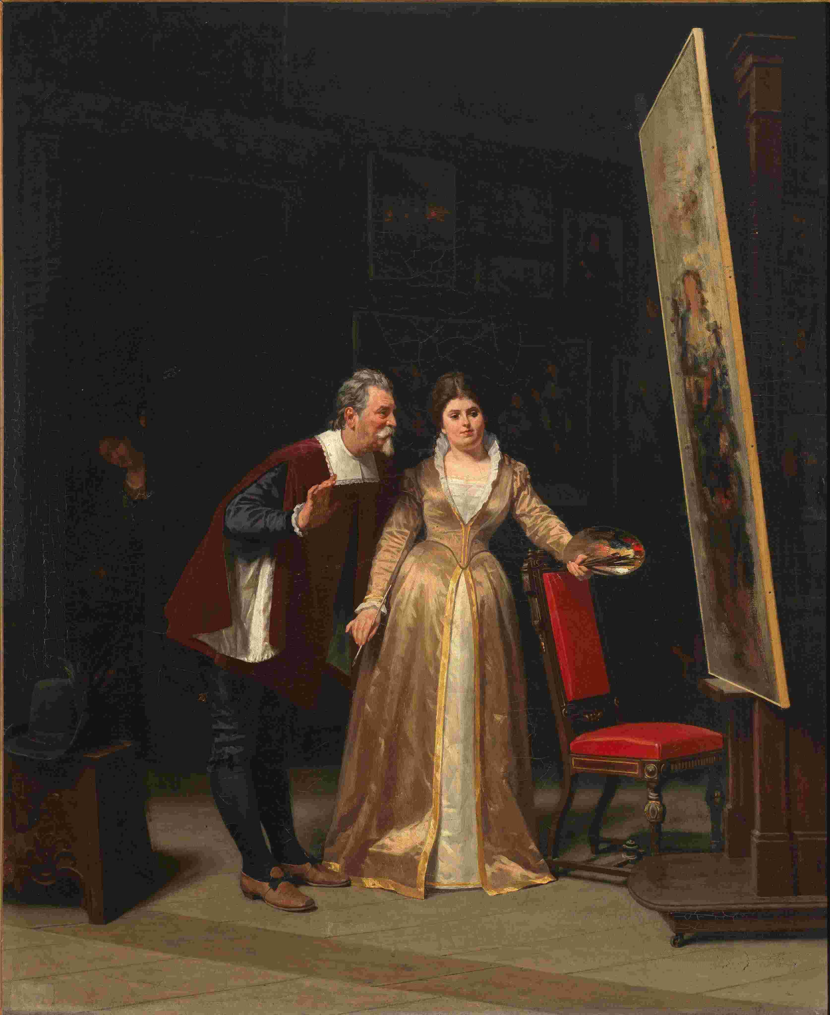 1. (Nell'atelier del maestro: Diana Di Rosa e Massimo Stanzione spiati da una serva), entro il 1877, Collezione Intesa Sanpaolo, Archivio Patrimonio Artistico Intesa Sanpaolo / foto Luciano Pedicini, Napoli